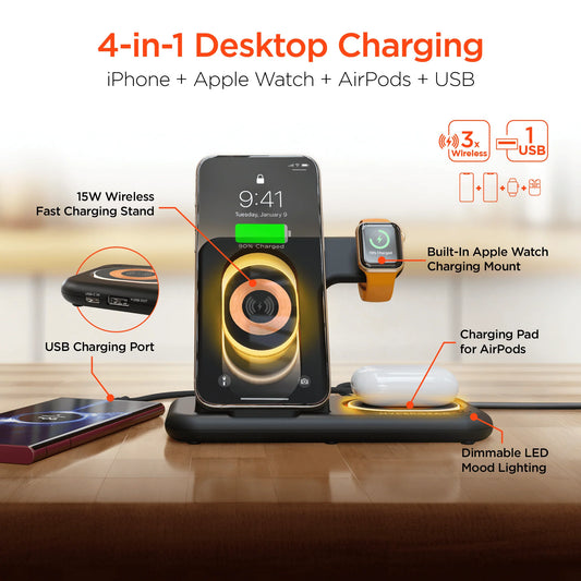 4-in-1 Wireless Charging Station for Apple iPhone, Airpods & Watch
